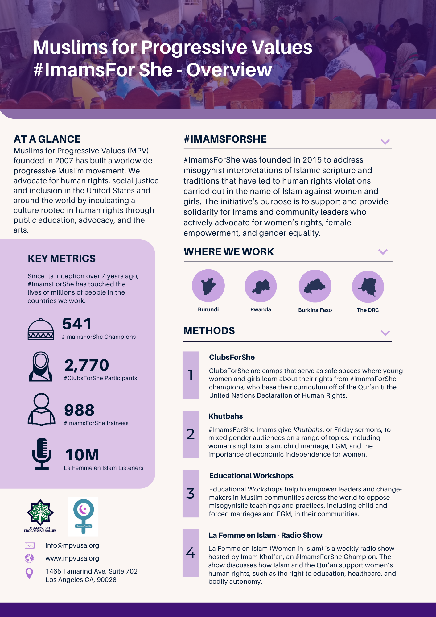 #ImamsForShe is a global MPV-initiative launched in March 2015 to address misogynist interpretations of Islamic scripture and traditions that have led to human rights violations carried out in the name of Islam against women and girls and the sub-human status of women and girls across Muslim-majority countries and within Muslim communities in the West. In spirit of the recently launched #HeForShe campaign by UN Women, the initiative’s purpose is to support and provide solidarity for Imams, Muslim leaders and Islamic scholars who actively advocate for women’s rights, women’s empowerment and gender equality, labeled collectively as #ImamsForShe Champions.